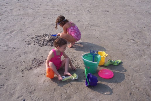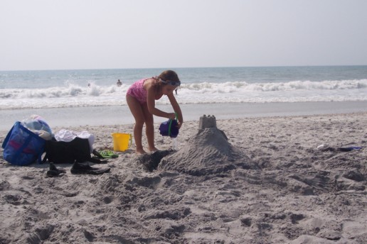 Leah helps Sarah make sand castles