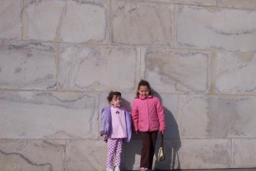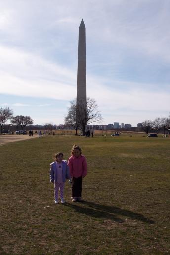 Sarah and Leah with the Washington Monument